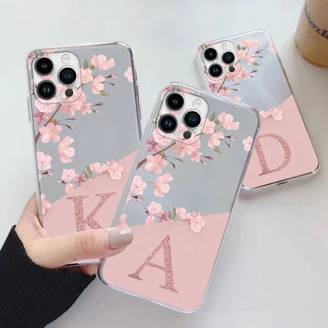 Flowers Letter Case For Iphone 14 Pro Max 14 Plus Capa Clear Soft Silicone Covers For